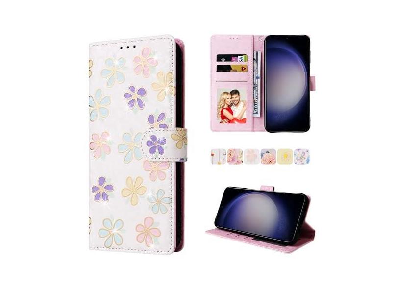 UEEBAI Capa carteira para Samsung Galaxy S24 5G, capa de telefone de couro PU Kickstand capa flip com bloqueio RFID slots de cartão alça de pulso alívio padrão gravado fecho magnético capa fólio -