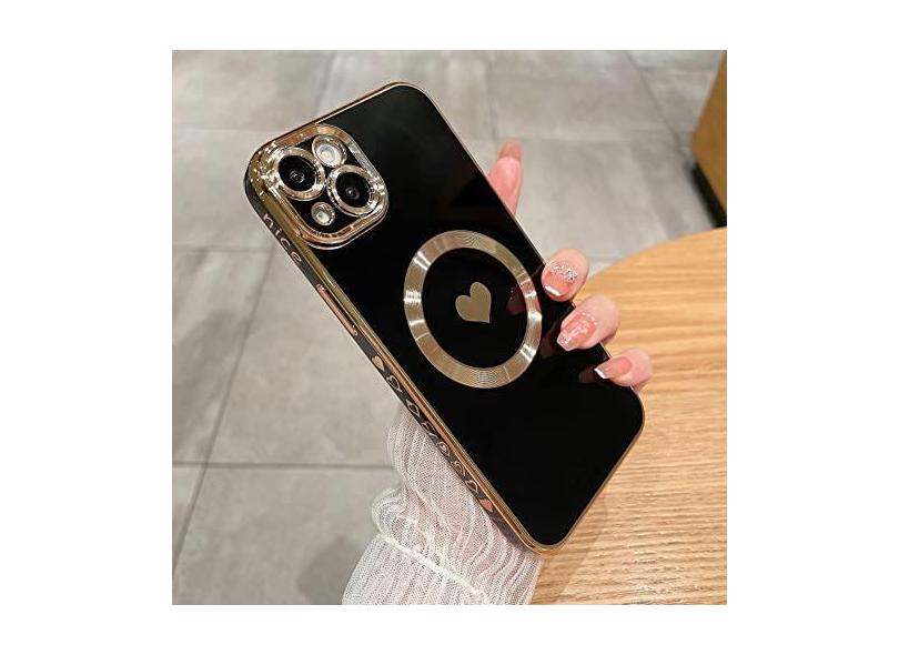 UEEBAI Capa magnética para iPhone 14 Plus 6,7 polegadas, capa com padrão de corações de amor com revestimento fofo compatível com carregador MagSafe capa de telefone macia à prova de choque capa