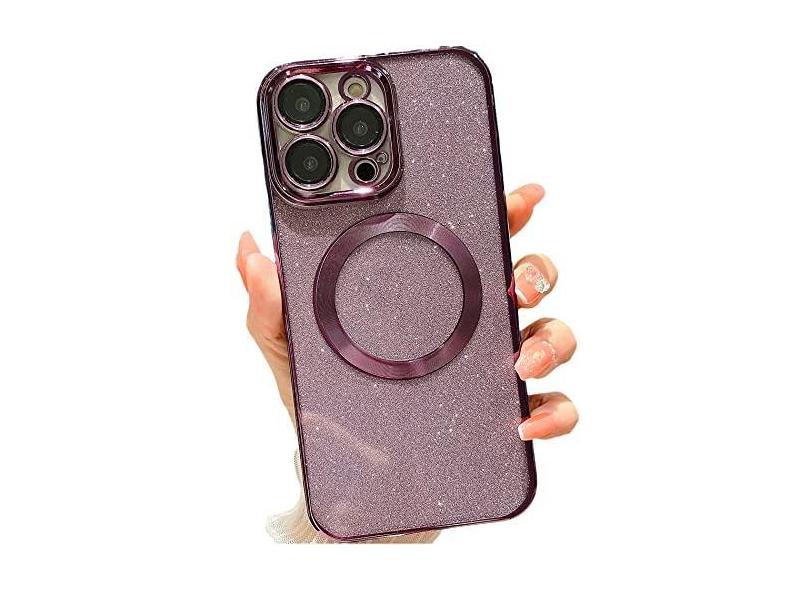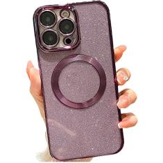 wahhle Capa de celular projetada para iPhone 14 com glitter magnético, revestimento luxuoso, linda capa de telefone brilhante, compatível com Magsafe para mulheres e meninas com protetor de câmera