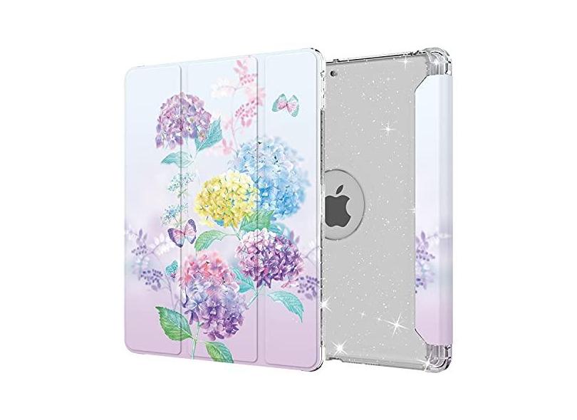 Capa para iPad 10.2 2019/2020, UZER Flower Series Ultra PU Leather Auto Sleep/Wake Capa Protetora Folio Trifold Suporte com TPU Macio Bling Capa Transparente para iPad 8ª/7ª Geração 10,2 polegadas