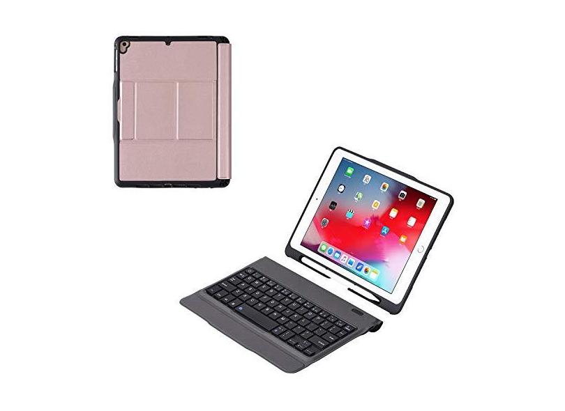 J&H Capa para teclado com vários ângulos para iPad 2017/2018 (9,7") Capa inteligente com teclado de alumínio ultrafino destacável para iPad 2017/2018 (9,7")