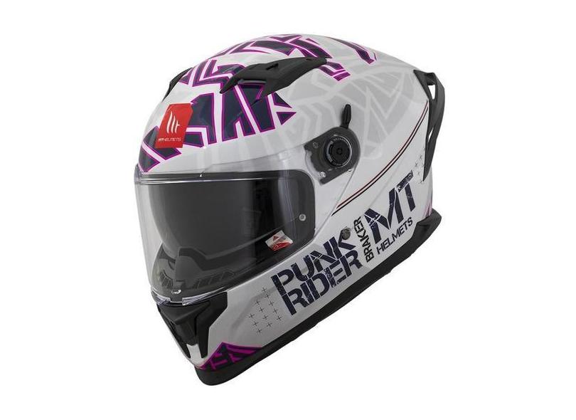 Capacete Feminino MT Braker SV Punk Branco Rosa Oculos Moto, BRANCO RO