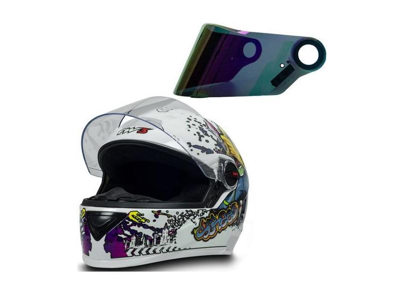 Capacete Fw3 Street Branco Brilhante 58 + Viseira Camaleão