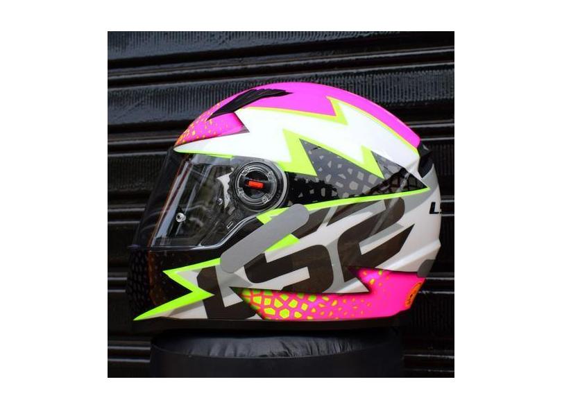 Capacete Masculino Ls2 Ff358 Speedy Branco Rosa Fechado Moto, Branco R