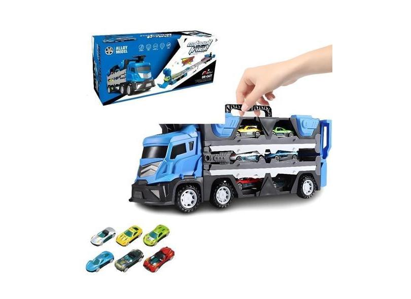 Brinquedo Carreta Cegonha Azul Dobravél Com 6 Carrinhos - Toys