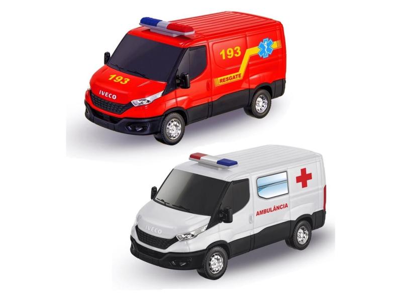 Kit de Carrinhos de Resgate com Ambulância e Samu De Brinquedo Iveco