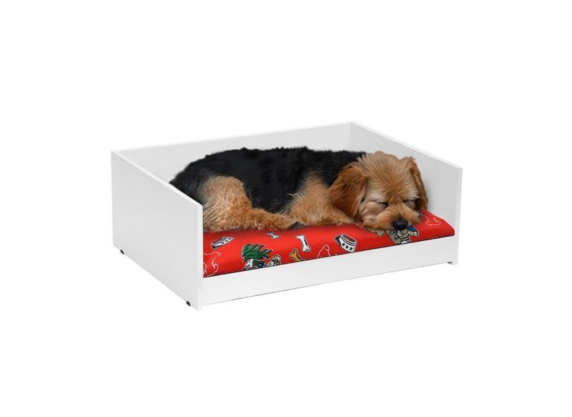 Cama Pet Retangular Resistente Caminha Estofada Ultra Macia Almofada Removível Lavável Para Cachorro Gato D&V - Branco/Vermelho- RPM