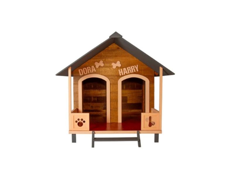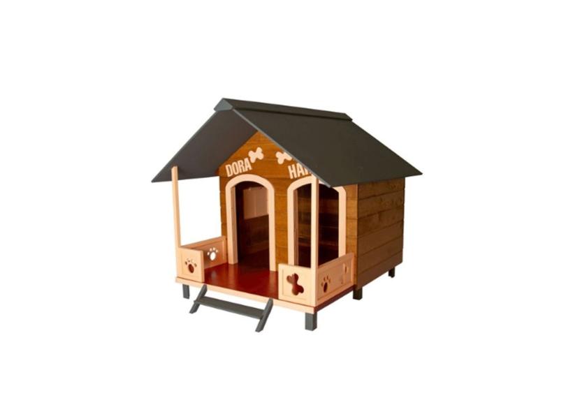 Casinha Casa de Cachorro Madeira Dupla Média Varanda Dog house