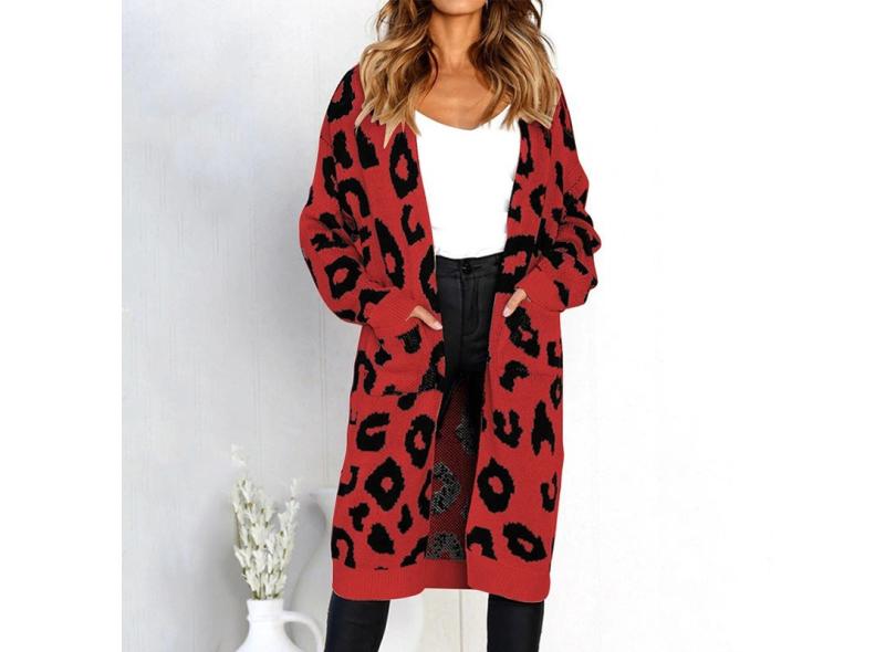 Autumn Mulheres longo de malha Cardigan camisola da cópia do leopardo #10 S