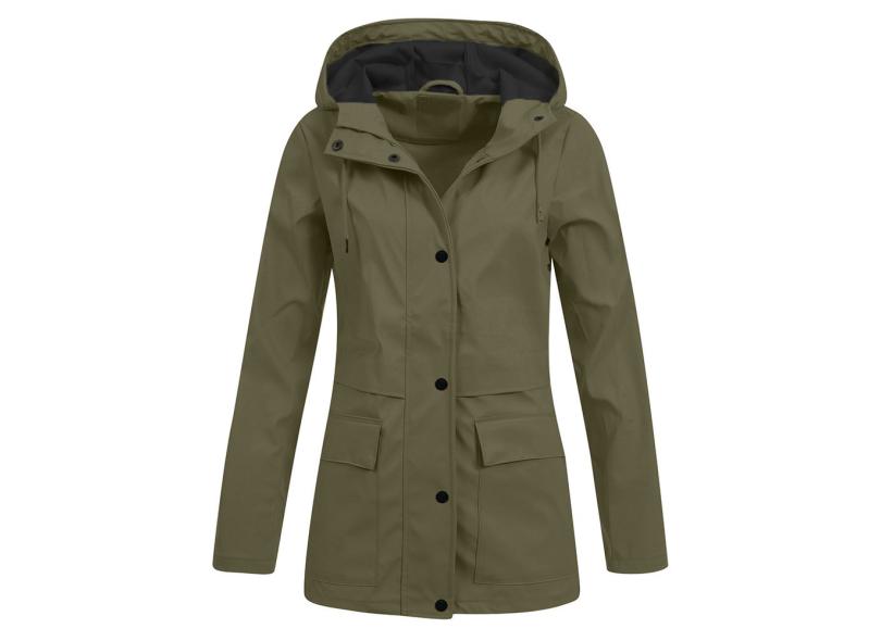 Casaco feminino sólido para chuva com capuz ao ar livre Sobretudo impermeável Casaco feminino à prova de vento