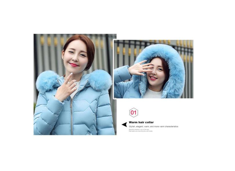 Jaqueta quente feminina de algodão com gola curta de pele e casaco com capuz