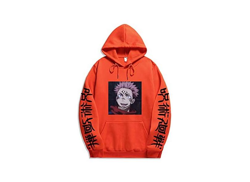Moletom com capuz Jujutsu Kaisen Yuji Anime japonês Jujutsu Kaisen Moletom com capuz Itadori Gojou unissex, Laranja 2, XXL