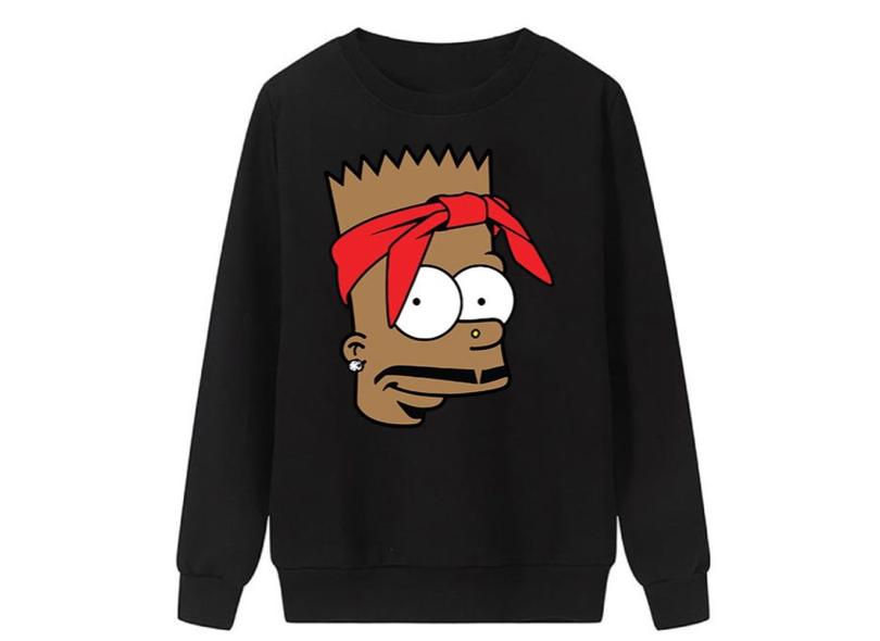 Moletom Masculino sem capuz algodao Bart Simpson Tupac Rapper