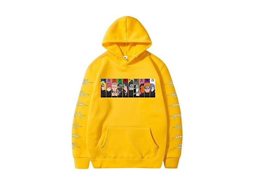 Moletom Naruto Anime Masculino Moletom Blusa Com Capuz Anime Estampada Moletom Naruto Infantil e Adulto (B-yellow,S)