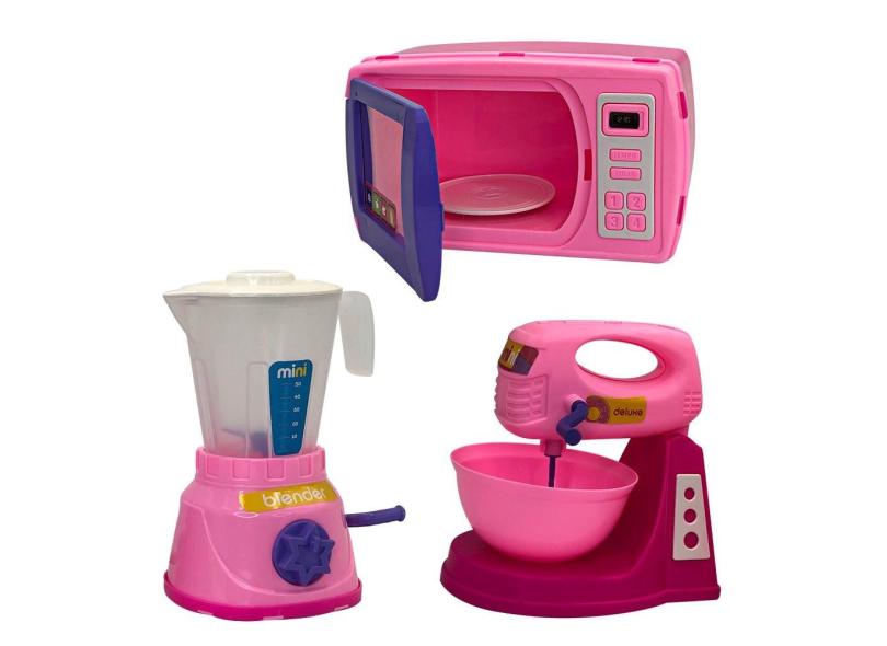 Kit Infantil Mini Confeitaria com Liquidificador, Batedeira e Micro-ondas