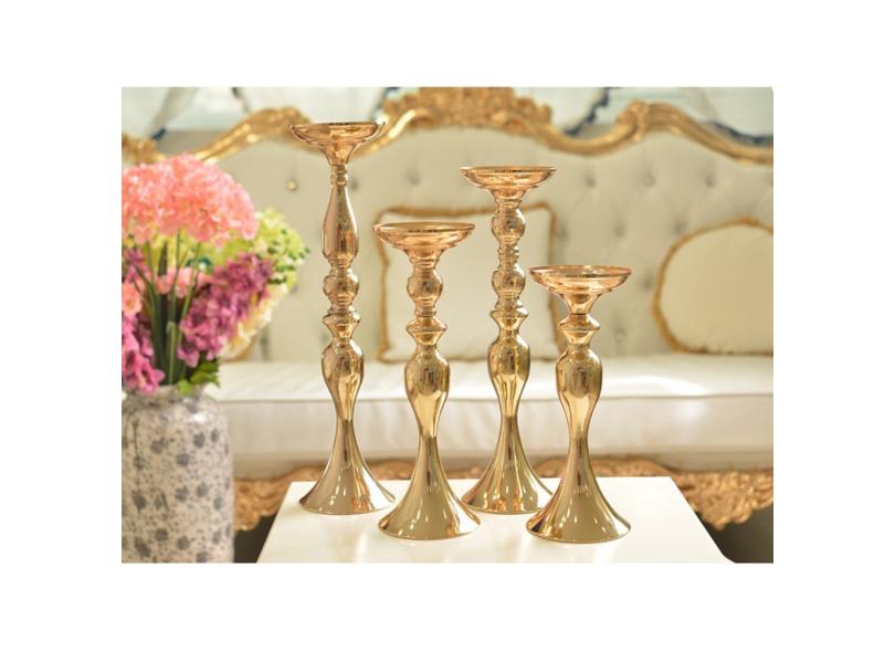 2xLong Stand Metal Candle Tea Light Holder Castiçal Flor Vaso Gold-M
