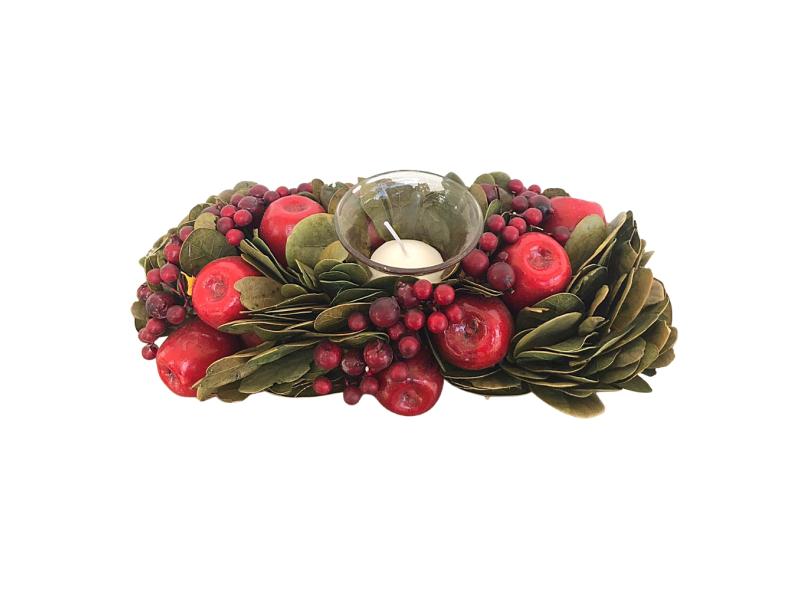 Castiçal Natalino com Folhas de Louro e Frutas s