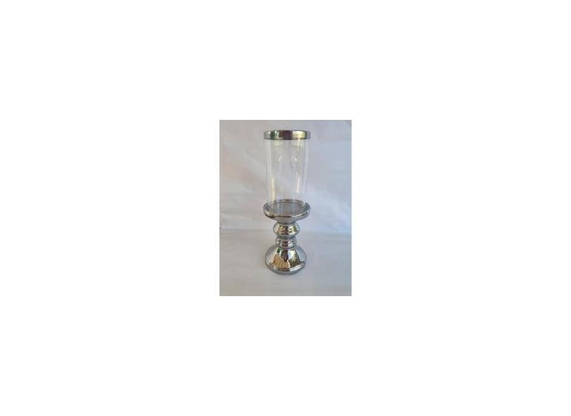 Castiçal porta vela ceramica pintura prata e vidro 24x10 cm
