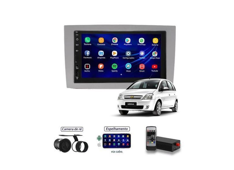 Kit Central Multimídia Meriva Mp5 / Mp8 + Moldura Prata + Câmera + TV