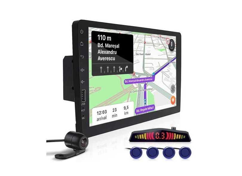 Kit Multimídia 1 Din 9 Polegadas + Câmera Ré + Sensor Ré Azul Fiat Sti