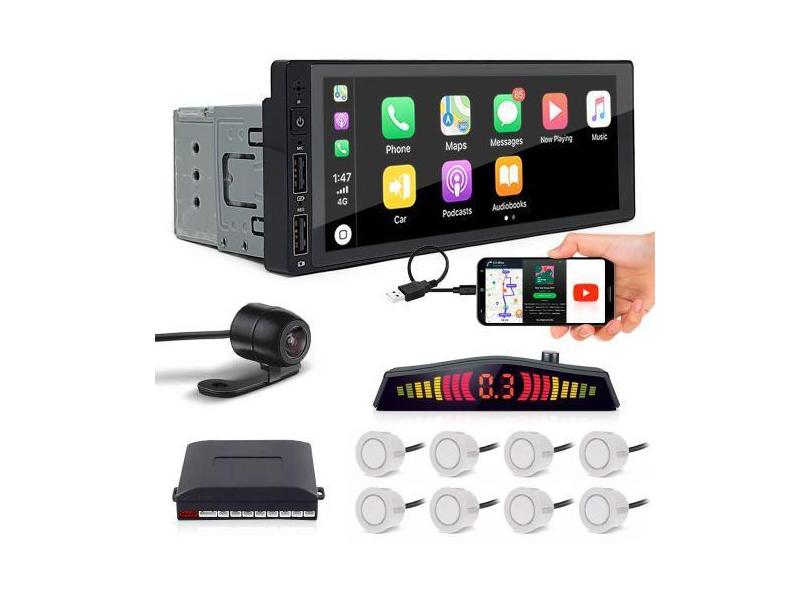 Kit Multimídia 1 Din + Câmera Ré + Sensor 8 Pontos Branco VW New Beetl