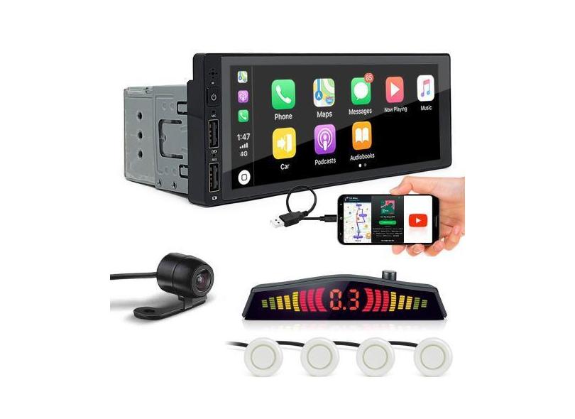 Kit Multimídia 1 Din + Câmera Ré + Sensor Ré Branco Pérola Peugeot 306