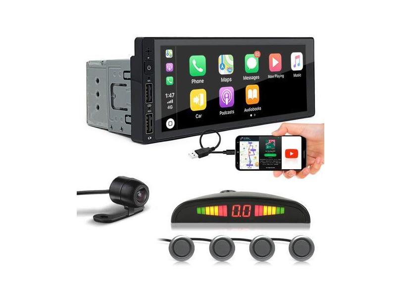 Kit Multimídia 1 Din + Câmera Ré + Sensor Ré Cinza Grafite Peugeot 306