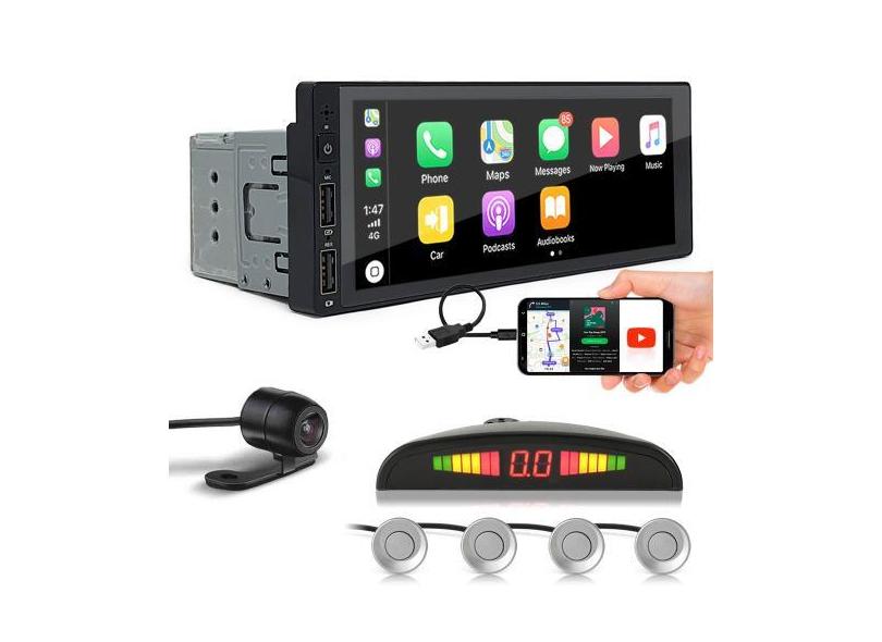 Kit Multimídia 1 Din + Câmera Ré + Sensor Ré Prata Fiat Bravo 2010 201