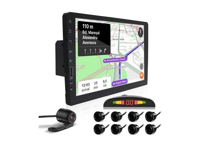 Kit Multimídia 9 Polegadas 1 Din + Câmera Ré + Sensor 8 Pontos Preto Z