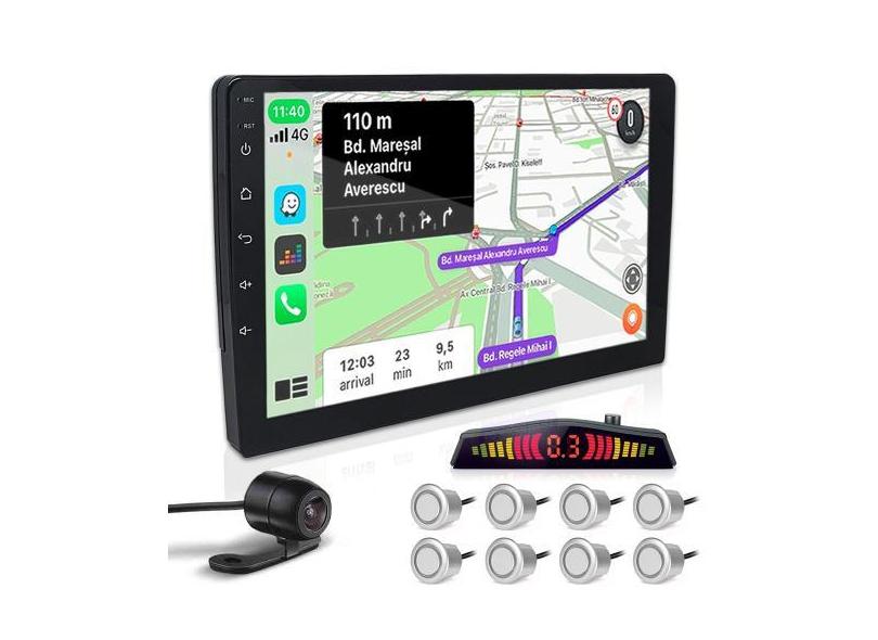 Kit Multimídia 9 Polegadas + Câmera Ré + Sensor 8 Pontos Prata Silvera