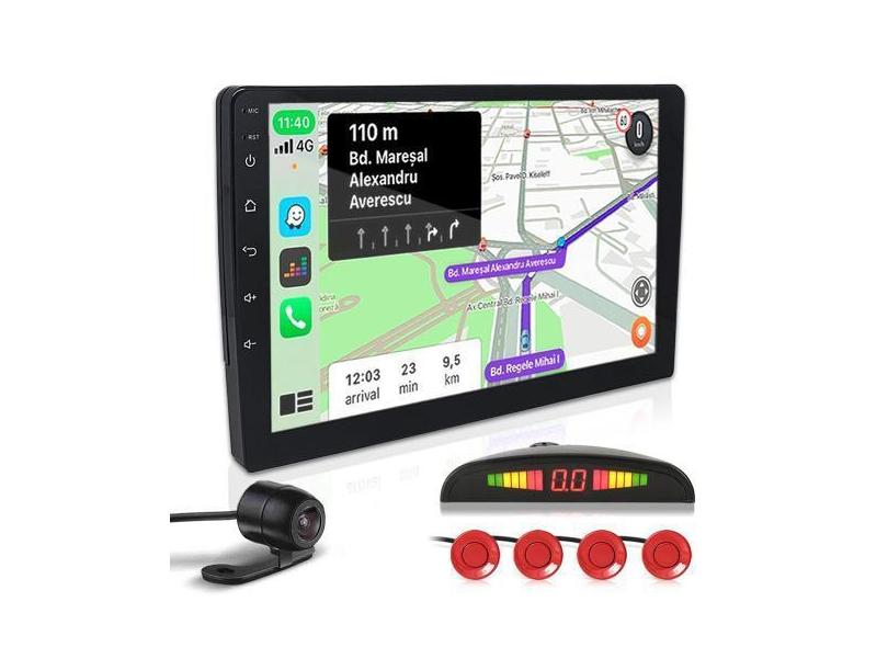 Kit Multimídia 9 Polegadas + Câmera Ré + Sensor Ré Vermelho Honda Civi