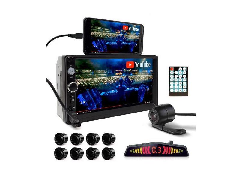 Kit Multimídia + Câmera Ré + Sensor Dianteiro Traseiro Preto Fiat Line