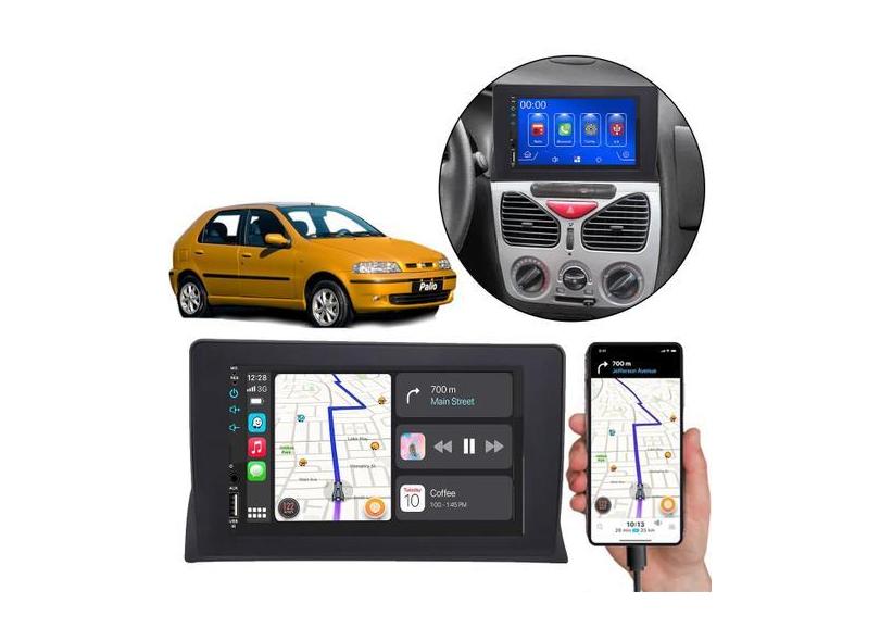 Kit Multimidia Carplay Palio 2001-2013 7 Pol MP5 Touch-screen + Câmera