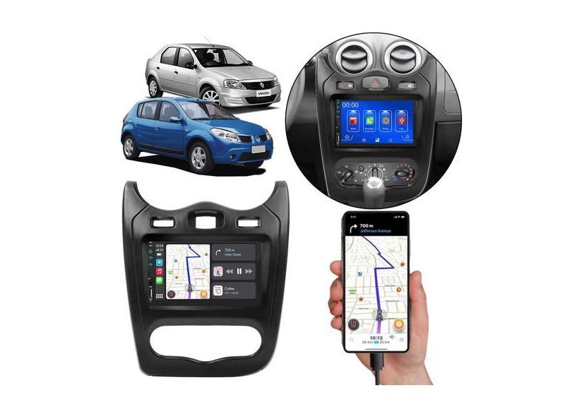 Kit Multimídia Carplay Sandero Logan 2012-2014 7 Pol MP5 Touch-Screen