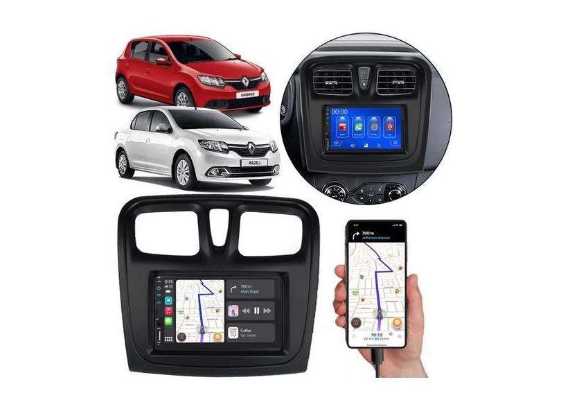 Kit Multimídia Carplay Sandero Logan 2015 A 2024 7 Pol MP5 Touch-scree