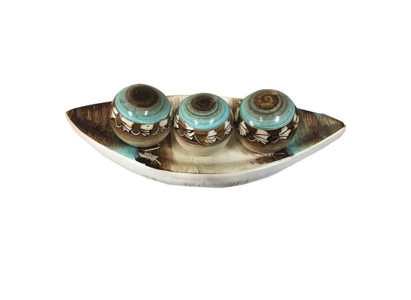 Centro Mesa Prato Decorativo 3 Bolas Enfeite Sala Cerâmica
