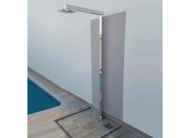 Ducha de piso quadrada 30cm inox 304 p/ piscina ou sauna L tubo quadrado