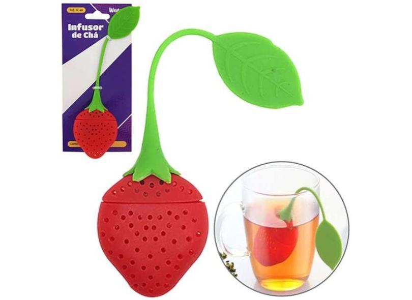 Infusor Silicone Chá Peneira Coador Ervas Individual Morango