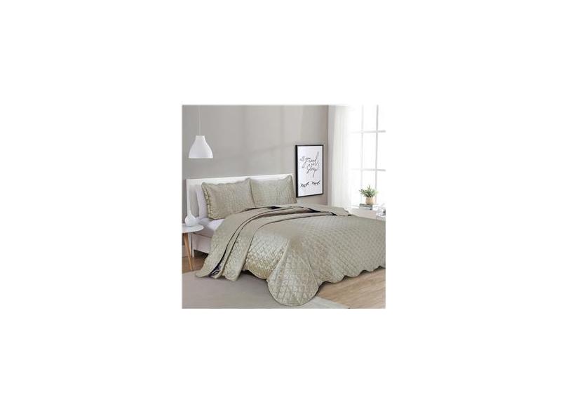 Colcha Dupla Face Casal Camesa Satin em Cetim de Microfibra 150 Fios com 3 Peças – Khaki