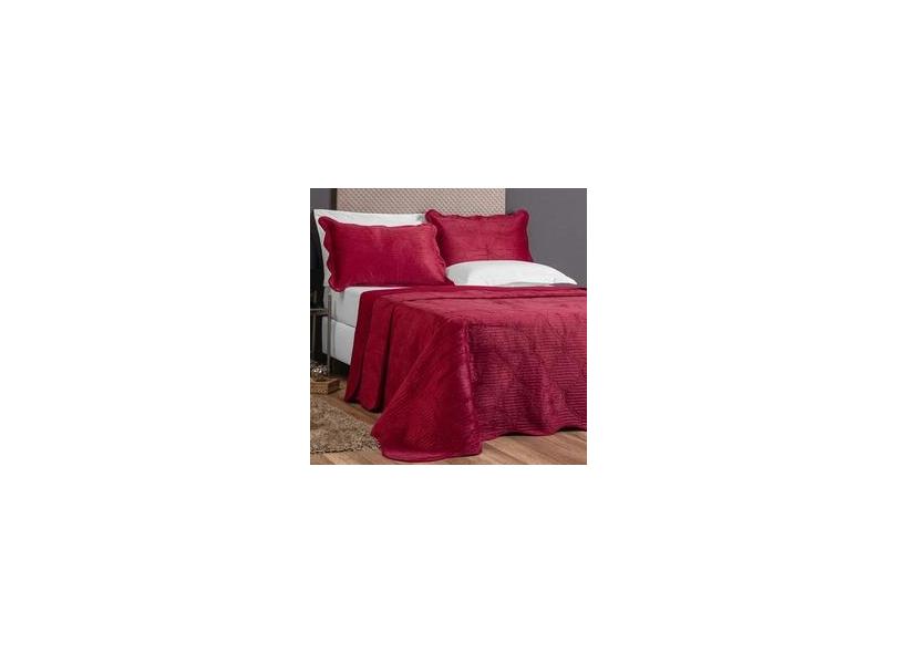 Kit Colcha Soft Line Queen Veludo Microfibra Efeito 3D Pinsonic 3 Peças - Vinho