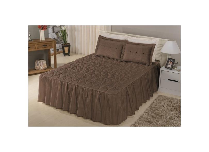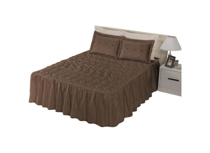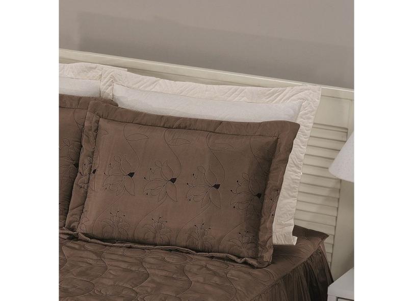 Kit Colcha Solteiro Floratta Cama Box Bordada e Matelada com Babado Duplo 02 Peças TABACO