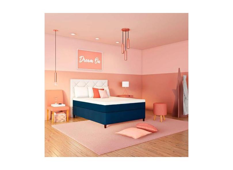 Colchão Casal Mola Ensacada Coucher Macio (25x138x188) Azul e Branco