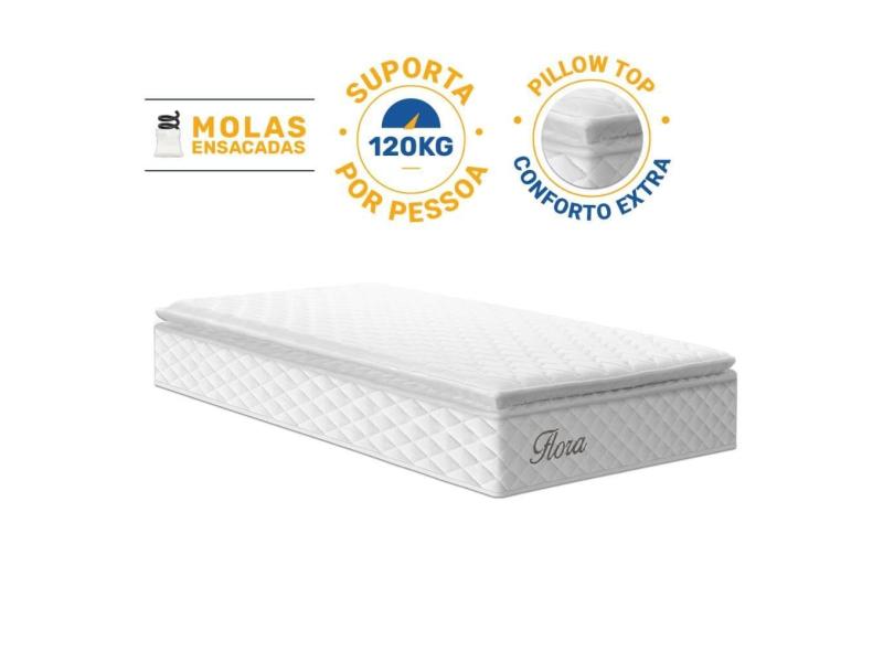 O menor preço encontrado no Brasil para Colchão de Molas Ensacadas Pillow Top Flora Solteiro 88cm atualmente é R$ 618,54.