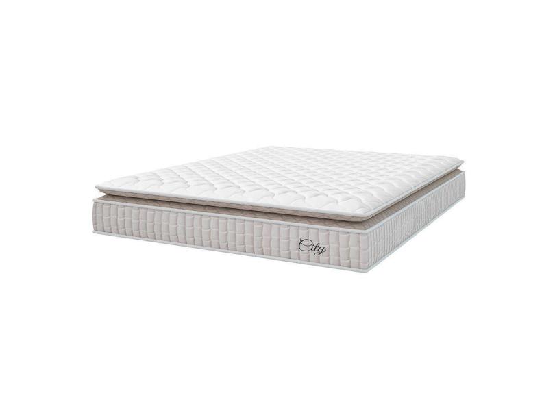 Colchão King Molas Ensacadas City Pillow Top 193x203x23cm Branco / Bege Branco/bg