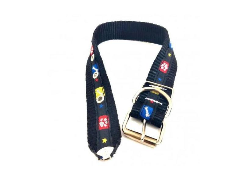 Coleira Cães Nicapet 25mm Pata Osso Fecho Fivela Cor Preta