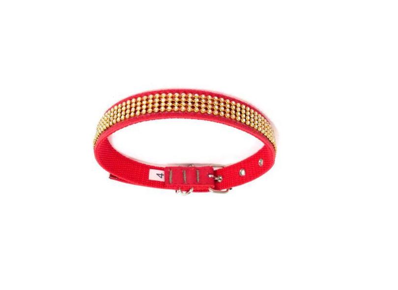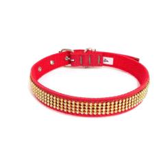 Coleira Camurça Com Strass Vermelha Tamanho Nº. 04 - Nica Pet