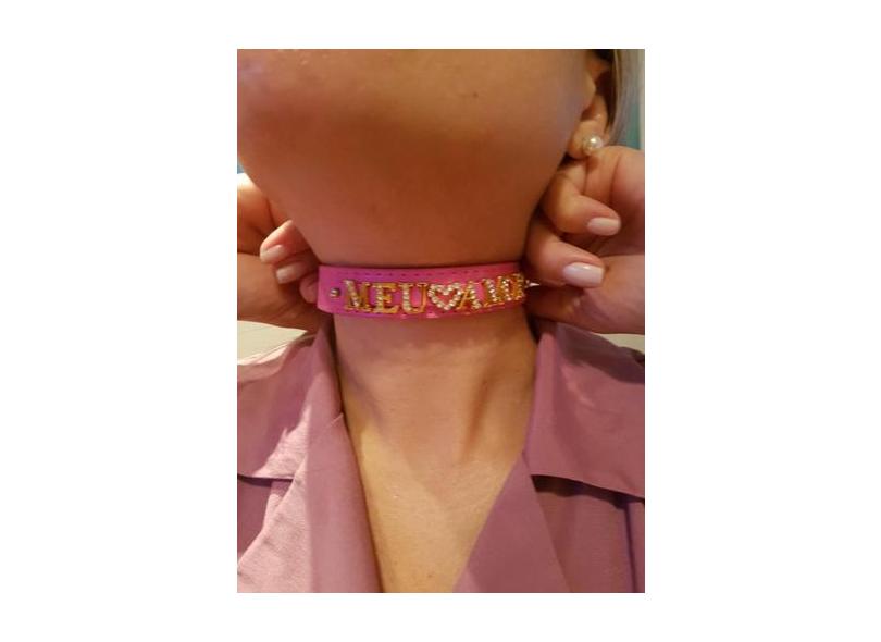 Coleira Meu Amor Em Letras Douradas Crystal - Sansin