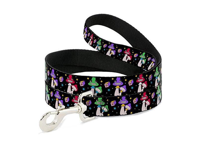 Coleira para cães, cogumelos felizes com estrelas, preta, multicolorida, 1,0 m de comprimento, 2,5 cm de largura