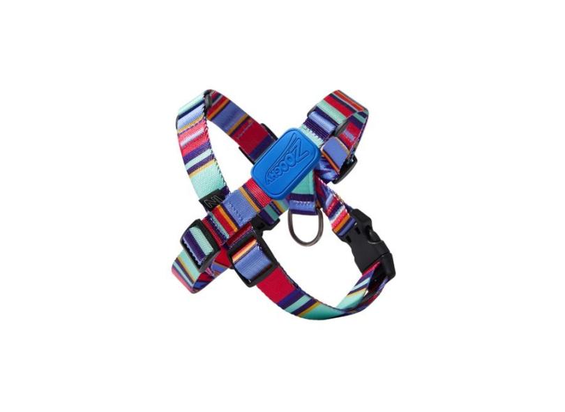 Coleira Peitoral Ajustável em X Raios e Listras Azul - G