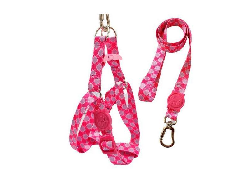 Coleira Peitoral Americano Para Cachorro + Guia Rosa Bolinha - Única M